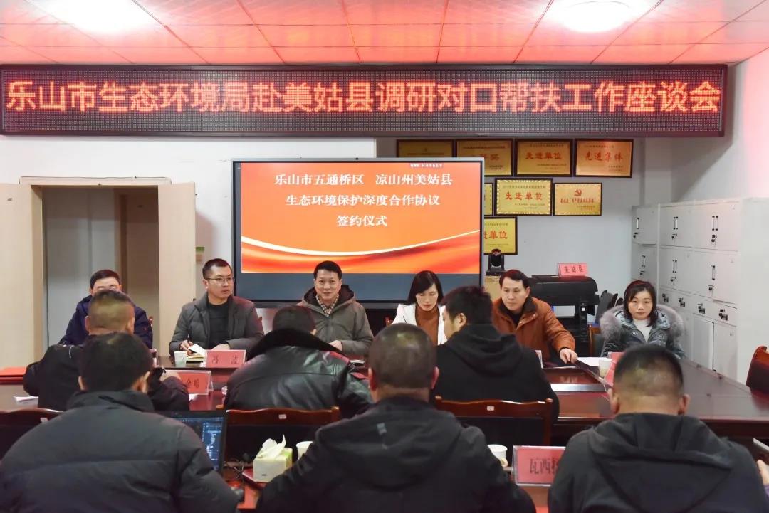 座谈会上,观看了《美姑生态环境保护电视专题片》,乐山市五通桥生态环境局援彝干部、美姑生态环境局党组成员、挂职副局长谢鸿涛汇报了在美姑工作生活情况,乐山市生态环境局和美姑生态环境局就进一步促进交流合作、深化结对帮扶进行了探讨。