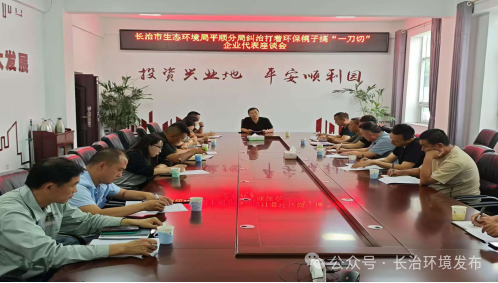 8月15日,长治市生态环境局平顺分局党组书记、局长王永胜、局党组成员、副局长黄镇恶组织召开纠治打着环保幌子搞“一刀切”企业代表座谈会,邀请14家企业面对面开展座谈,切实解决企业生产经营过程中遇到的环保难题。针对提出的问题,长治市生态环境局平顺分局本着实打实解决企业发展过程中遇到的难题,仔细倾听记录,并逐一耐心回应。